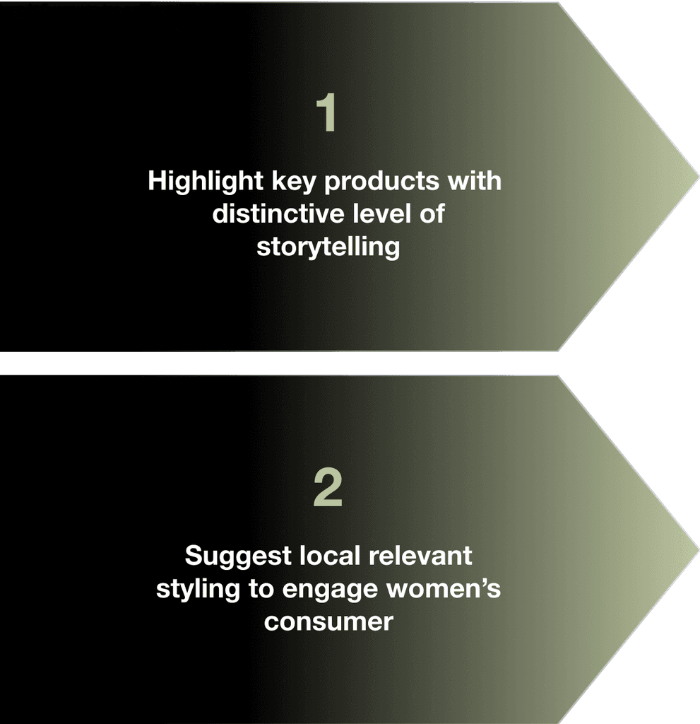 A refreshed store look have brought fresh energy - more consumer traffic and two key products rising into top sellers. To keep campaign momentum in rest of marketplace, we designated dedicated spaces in each store to highlight impactful display of key styles and products.