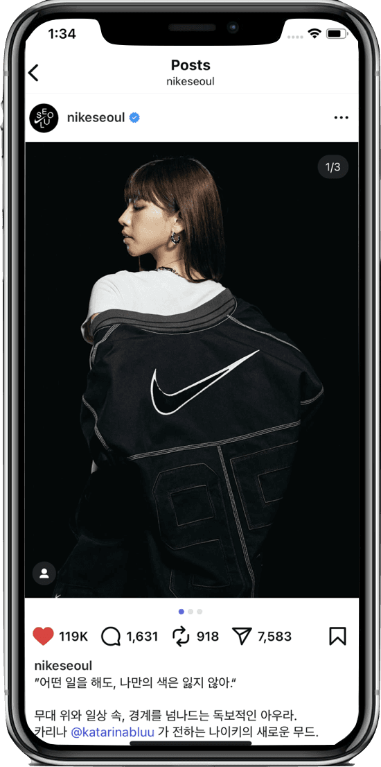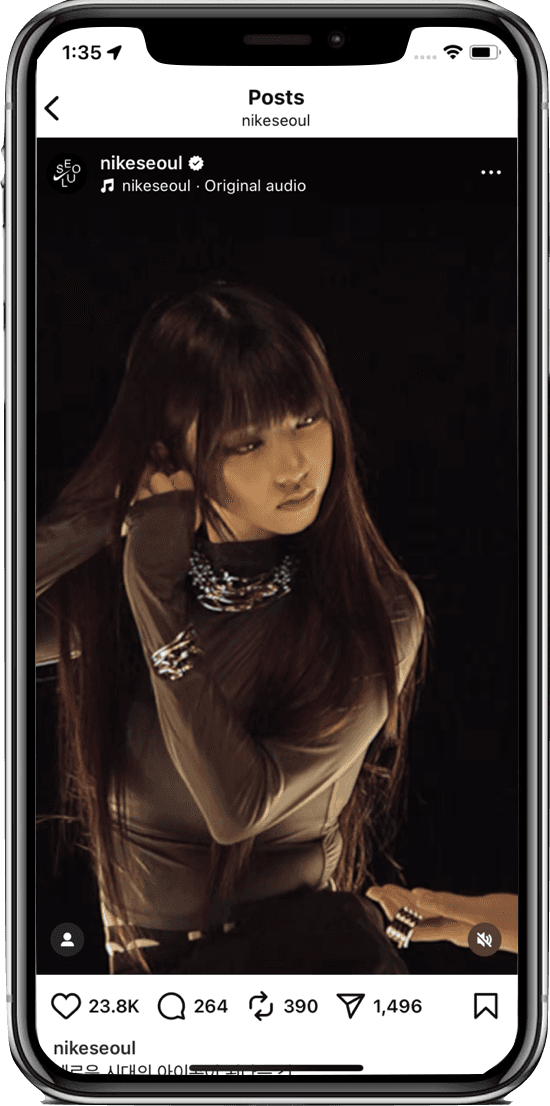 Introduce her future icons Air Max Muse & Air Superfly through the inspirational catalyst & athlete In the recent campaign, the Karina x Nike partnership content recorded the highest view count (3M), highlighting the strong performance of carousel formats. With 86% of views coming from non-followers, it’s likely that Karina’s fanbase played a major role. On August 1st, IGF posts averaged 1.1M views, while IGR posts showed a lower 719K. Despite this, the Karina Q&A content achieved the highest views among all catalyst Reels. On IG Shop, the green color product led with 1.1K PPV, significantly outperforming the silver color (243) to ignite the conversation and create buzz in social.