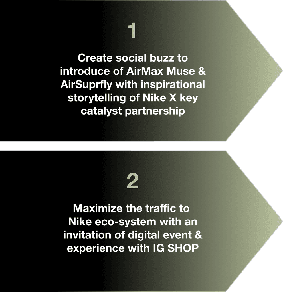 Introduce her future icons Air Max Muse & Air Superfly through the inspirational catalyst & athlete storytelling to ignite the conversation and create buzz in social.